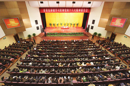 就深入學(xué)習(xí)宣傳貫徹黨的十八大精神,周春雨強(qiáng)調(diào),要在深刻理解、把握精髓上下功夫。各級(jí)各部門和廣大干部群眾要按照中央提出的“七個(gè)深刻領(lǐng)會(huì)”的要求,堅(jiān)持不懈地學(xué)深學(xué)透,把握實(shí)質(zhì),融會(huì)貫通,切實(shí)把思想和行動(dòng)統(tǒng)一到十八大精神上來。要在廣泛宣傳、凝聚力量上下功夫。要以領(lǐng)導(dǎo)干部為重點(diǎn),精心安排好各級(jí)干部的培訓(xùn)、輪訓(xùn),真正做到以十八大精神武裝頭腦、指導(dǎo)實(shí)踐、推動(dòng)工作。各地區(qū)各部門的主要領(lǐng)導(dǎo)既要身體力行,帶頭學(xué)習(xí),更要帶頭宣傳,帶頭宣講,確保集中宣講活動(dòng)全覆蓋,使學(xué)習(xí)教育覆蓋到各個(gè)社會(huì)團(tuán)體,各級(jí)宣傳輿論部門要精心策劃集中報(bào)道,積極營(yíng)造學(xué)習(xí)貫徹十八大精神的濃厚氛圍。