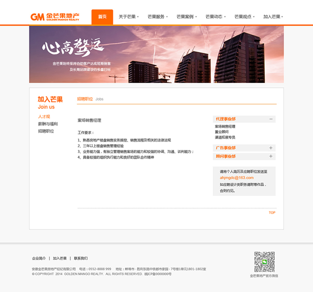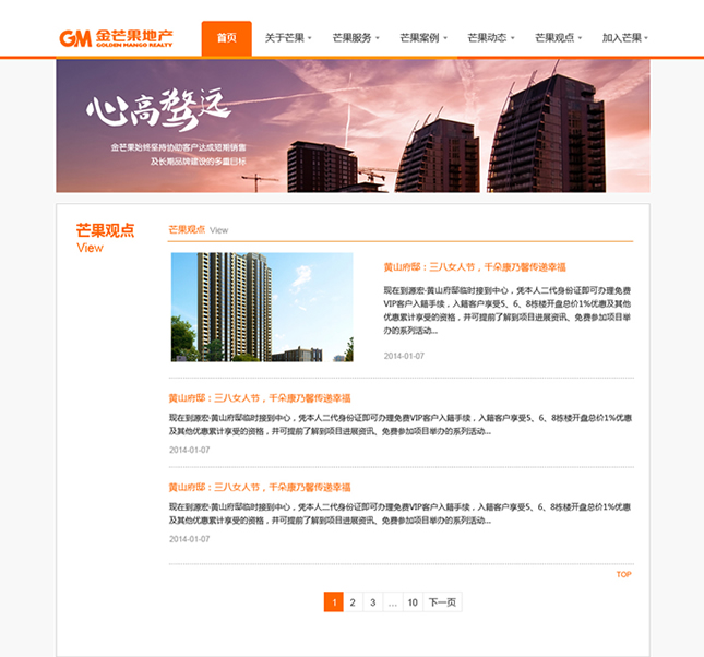 金芒果基于對(duì)中國房地產(chǎn)的執(zhí)著追求,憑借對(duì)市場(chǎng)營(yíng)銷的激情創(chuàng)新,以完全經(jīng)過市場(chǎng)檢驗(yàn)的專家團(tuán)隊(duì)和對(duì)市場(chǎng)的敏銳天賦,大膽構(gòu)思、執(zhí)著實(shí)踐、激情專注、科學(xué)分析,贏得了業(yè)主的廣泛認(rèn)同和支持,并以優(yōu)異業(yè)績(jī)和服務(wù)質(zhì)量,被客戶譽(yù)為具實(shí)效、富激情、科學(xué)嚴(yán)謹(jǐn)?shù)膶I(yè)房地產(chǎn)服務(wù)商。
