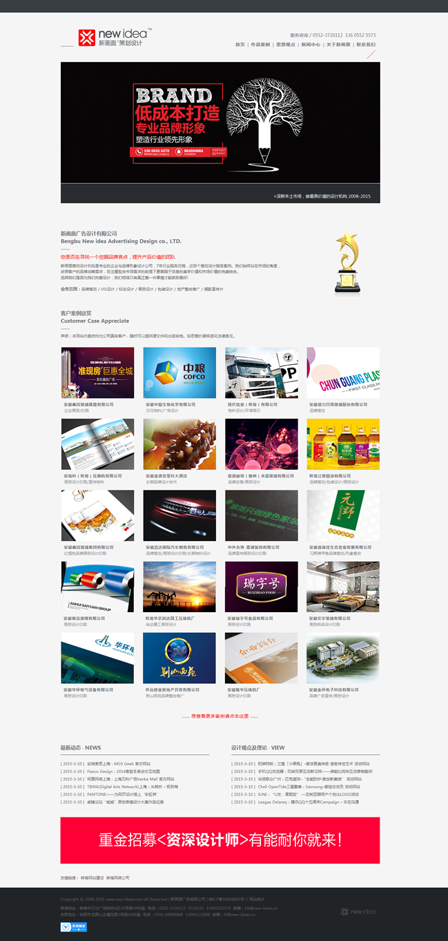 新畫面策劃設(shè)計機構(gòu)是專業(yè)的企業(yè)與品牌形象設(shè)計公司,7年行業(yè)服務歷程,近百個策劃設(shè)計服務案例。我們始終站在市場的角度,
